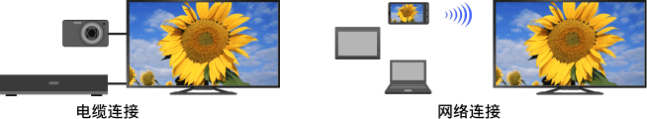 连接不同的设备(例如,BD录像机、数码照相机、PC、智能手机、平板电脑)到电视机。可以在所连设备上欣赏图像和音乐等播放内容。