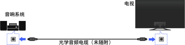 使用光学音频电缆将带有数字输入的音响系统(例如家庭影院系统)连接到电视机。