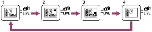 Setiap kali tombol Wi-Fi ditekan, mode sambungan Wi-Fi kamera akan beralih sebagai berikut.