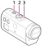 เลื่อนสวิตช์ไปทางด้าน [HOLD] เพื่อล็อคปุ่ม REC วิธีปลดล็อค ให้เลื่อนกลับมายังตำแหน่งเดิม