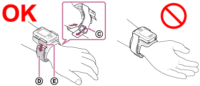 - Щоб закріпити пульт дистанційного керування на руці, одягніть його рідкокристалічним екраном паралельно до задньої частини руки та кнопками REC/ENTER у напрямку кінчиків пальців. Пропустіть ремінь через