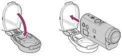 打开盒盖,并将摄像机插入到盒体中。