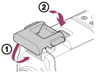 )的方向将搭扣锁滑动并按住,然后握住画圈部分并朝着(