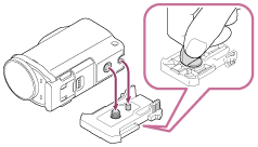 将防水套装底部的三脚架螺丝孔对准连接搭扣的三脚架螺丝,然后用三脚架螺丝牢牢固定。确认安装是否牢固。