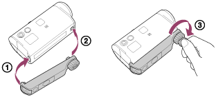 将三脚架适配器的螺丝固定到摄像机的三脚架适配器连接孔。