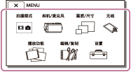 [相机/麦克风]、[无线]和[设置]菜单有子类别。选择子类别图标以便您可以选择所需的菜单项目。