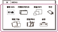 이 제품에서는 다양한 메뉴 항목이 6(HDR-CX405)/7 (HDR-CX440/PJ410/PJ440)가지 메뉴 범주로 분류되어 있습니다.