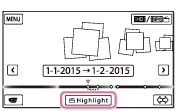 Highlight] sa nezobrazí, ak sú vybraté len videozáznamy nahrané vo formáte AVCHD.