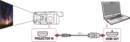 - Raccordez la prise PROJECTOR IN de ce produit à une prise de sortie HDMI de l’autre dispositif à l’aide du câble HDMI (fourni).