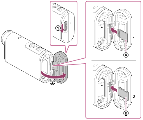Abra a tampa e, em seguida, pressione ligeiramente o cartão de memória uma vez.