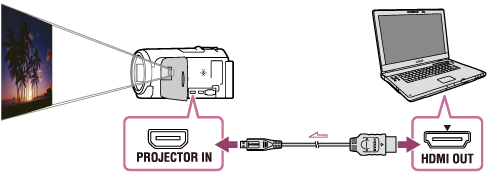 - فیش PROJECTOR IN این محصول را با استفاده از کابل HDMI (ضمیمه شده) به یک فیش خروجی HDMI یک دستگاه دیگر متصل کنید.