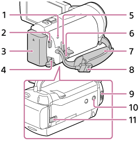 - Компоненти й елементи керування (збоку) (HDR-CX450/CX455/CX485) [6]