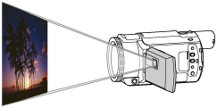 Tuotetta ei pidellä vakaana, joten tärinää voi ilmetä. Pitele tuotetta vakaasti kahdella kädellä kuvauksen aikana. Huomaa kuitenkin, ettei kameran tärinän varoitusilmaisin poistu näkyvistä.