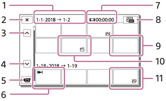 - Váltás a videolejátszási vagy a fénykép-megjelenítési képernyőre (VISUAL INDEX)