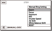 Anda dapat melakukan registrasi fungsi yang anda inginkan ke tombol MANUAL atau cincin MANUAL.