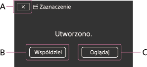 B: Wyświetlony zostanie ekran, na którym można wybrać udostępnienie utworzonego filmu z zaznaczenia na smartfonie lub komputerze. Do udostępnienia filmu z zaznaczenia wymagane jest połączenie Wi-Fi lub USB.