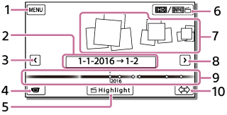 - Prepínanie medzi obrazovkou prehrávania videozáznamov a fotografií (VISUAL INDEX)