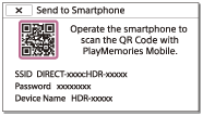 - Starta PlayMemories Mobile, välj [Skanna kamerans QR Code] - [OK] - [OK], läs sedan QR Code som visas på produktens LCD-skärm med din smartphone eller surfplatta.