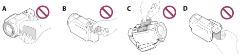 - Håll inte produkten i följande delar, och håll den heller inte i uttagsskydden.