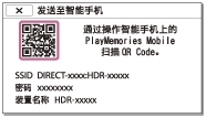 - 启动PlayMemories Mobile,选择[扫描拍摄装置的QR Code] - [OK] - [OK],然后用智能手机或平板电脑读取本机液晶显示屏上显示的QR Code。