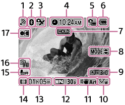 - Gli indicatori tra parentesi vengono visualizzati durante la ripresa di fermi immagine.