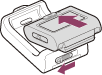 - Allineare la parte sporgente del telecomando con la parte concava dell’Adattatore di Montaggio, tirando contemporaneamente la leva di rilascio dell’Adattatore di Montaggio verso il lato opposto del dito.