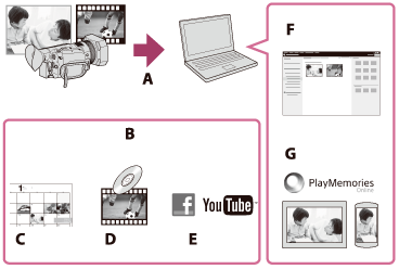 يمكنك عن طريق برنامج PlayMemories Home استيراد الأفلام والصور إلى كمبيوترك واستخدامها بطرق متعددة.
