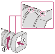 - قم بإزالة حاجب انعكاسات ضوء العدسة إذا أردت تركيب أو إزالة مرشح PL 62 مم (2 1/2 بوصة) أو واقية MC.