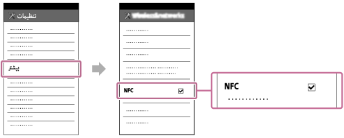 - [تنظيمات] را روی تلفن هوشمند انتخاب کنید، سپس [بيشتر] را انتخاب کرده و یک علامت تیک در کنار [NFC] قرار دهید.
