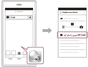 - PlayMemories Mobile را آغاز کرده و [QR Code دوربین را اسکن کنید.] را از صفحه PlayMemories Mobile انتخاب کنید.