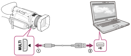 - Bila perangkat lunak PlayMemories Home sudah di-instal pada komputer anda, hubungkan camcorder anda dengan komputer anda