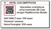 (ATUR NETWORK) - [KNTRL DGN SMRTPHONE].- QR Code, SSID. kata sandi dan nama perangkat ditampilkan di layar LCD camcorder. Camcorder sekarang siap dioperasikan menggunakan smartphone anda.