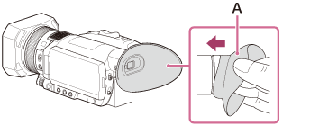 - Se o visor ocular estiver estendido quando instalar a bateria NP-FV100A (vendida separadamente), o adaptador ocular grande e a bateria podem interferir ligeiramente um com o outro. Esta situação não afeta a funcionalidade da câmara de vídeo.