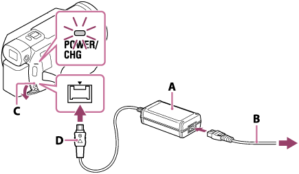 Opladning af batteriet ved hjælp af vekselstrømsadapteren