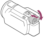- Jos etsin (mallit, joissa on etsin) on vedetty ulos, palauta se sisään kuvassa osoitetulla tavalla.