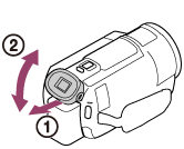 - Jos tätä tuotetta ei käytetä tiettyyn aikaan, virta sammuu ja etsimen näyttö poistuu näkyvistä. Voit näyttää näytön uudelleen työntämällä etsimen sisään ja kytkemällä virran päälle vetämällä sen uudelleen ulos.