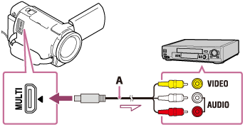 - Kytke laite tallennuslaitteeseen AV-kaapelilla (myydään erikseen).