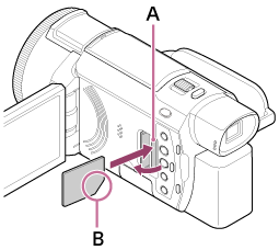 Β: Εισαγάγετε την κάρτα μνήμης με την κομμένη άκρη έως ότου ασφαλίσει στη θέση της, όπως φαίνεται στην εικόνα.