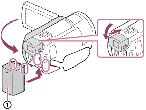 Zamknij monitor LCD i cofnij wizjer (modele z wizjerem), a następnie podłącz akumulator (
