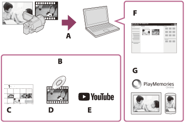 G: Совместное использование изображений с помощью приложения PlayMemories Online