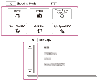 Ponuky [Camera/Mic], [Wireless] a [Setup] obsahujú podkategórie. Vyberte ikonu podkategórie, aby ste mohli vybrať požadovanú položku ponuky.