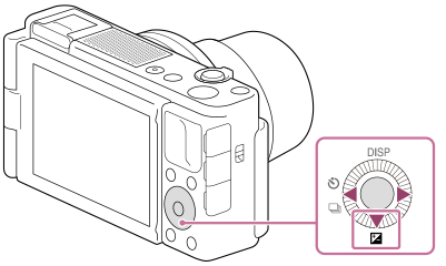 (Корект. експозиції) на диску керування → натисніть лівий/правий край диска керування або повертайте диск керування, та виберіть потрібне налаштування. Сторона + (збільшення):
