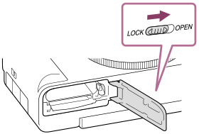 - Σύρετε τον διακόπτη στο κάλυμμα της μπαταρίας/κάρτας μνήμης, για να ανοίξετε το κάλυμμα.