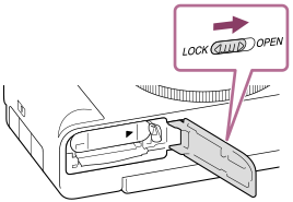 - Σύρετε τον διακόπτη στο κάλυμμα της μπαταρίας/κάρτας μνήμης, για να ανοίξετε το κάλυμμα.