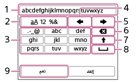 عندما يكون الإدخال اليدوي للحروف مطلوبًا، يتم عرض لوحة مفاتيح على الشاشة. للاطلاع على أمثلة للوظائف التي تستخدم لوحة المفاتيح، انظر «الموضوع ذو الصلة» بأسفل هذه الصفحة.
