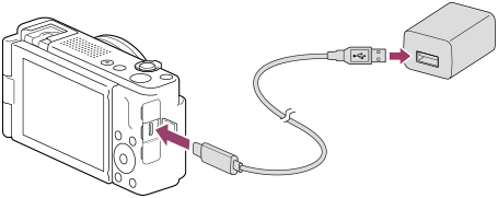 - پیش از شارژ کردن، مطمئن شوید که "نکات در مورد بسته باتری و شارژ کردن باتری" را نیز خوانده اید.