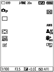 - هنگامی که [تنظیم DISP(صفحهنمایش)] بر روی [نمایش همه اطلاعات] تعیین می شود و علامت های نشانه عملکرد لمسی پنهان هستند، مورد ذیل مثالی از نمایش است.