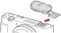 از صفحه باد توسط وصل کردن آن به کفشک ارتباط چندگانه برای کاهش نویز باد دریافتی توسط میکروفون داخلی هنگام ضبط کردن فیلم ها استفاده کنید.