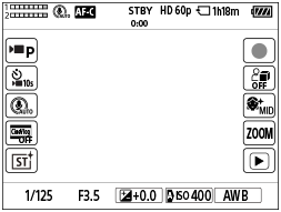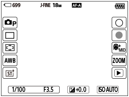 علامت های نشانه روی طرف راست: یک تصویر ساکن را می گیرد، ضبط کردن فیلم ها را شروع می کند،