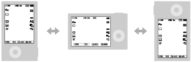 در حین نمایش عمودی، جهت طرف بالا/پایین/چپ/راست کلید گردان کنترل و عملیات لمسی نیز برای مطابقت با جهت نمایشگر به صورتی مرتب می شوند که عمل بصری امکان پذیر باشد.